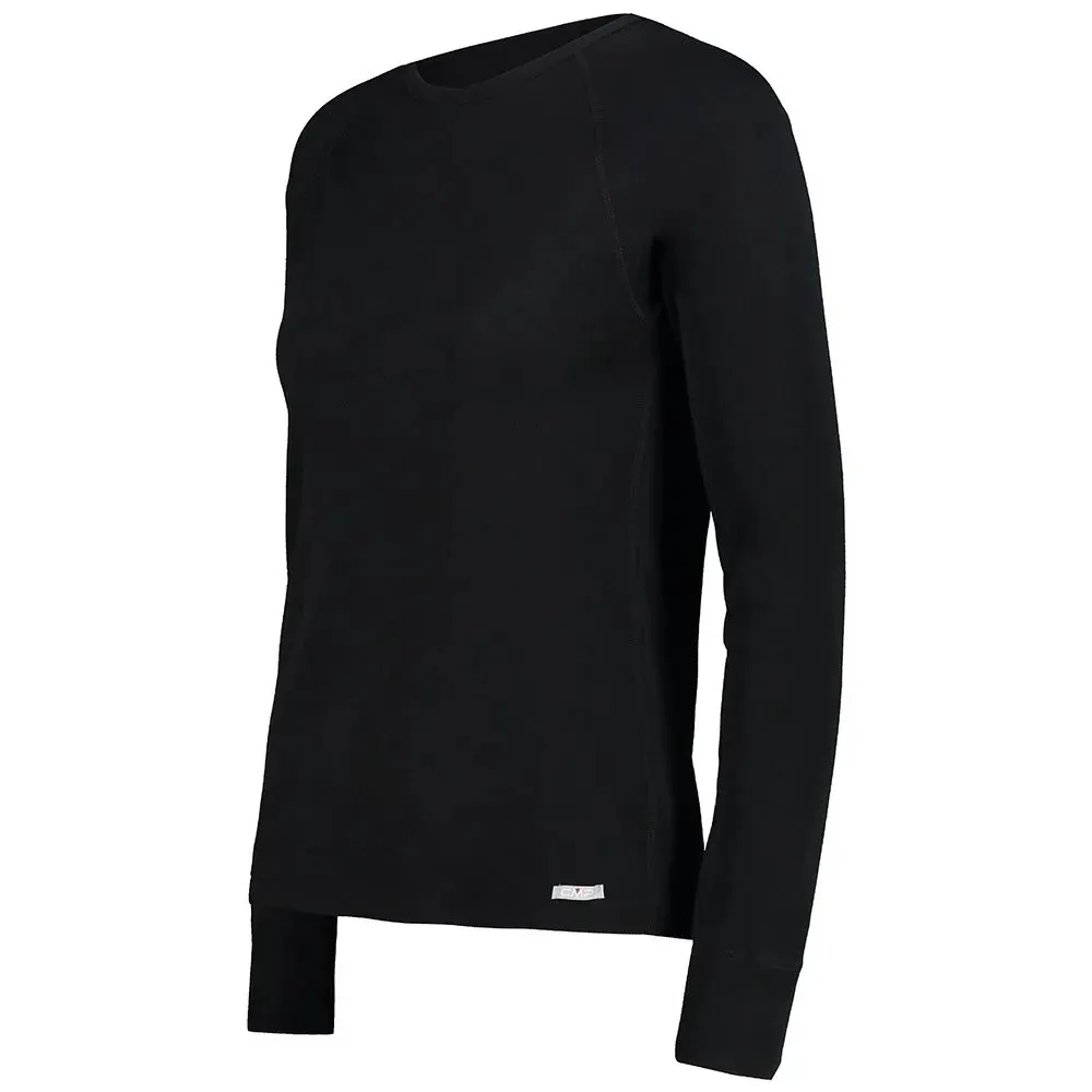 Round-neck knit in polyester with long sleeves designed to be an underlayer on colder days or for winter sports adventures.