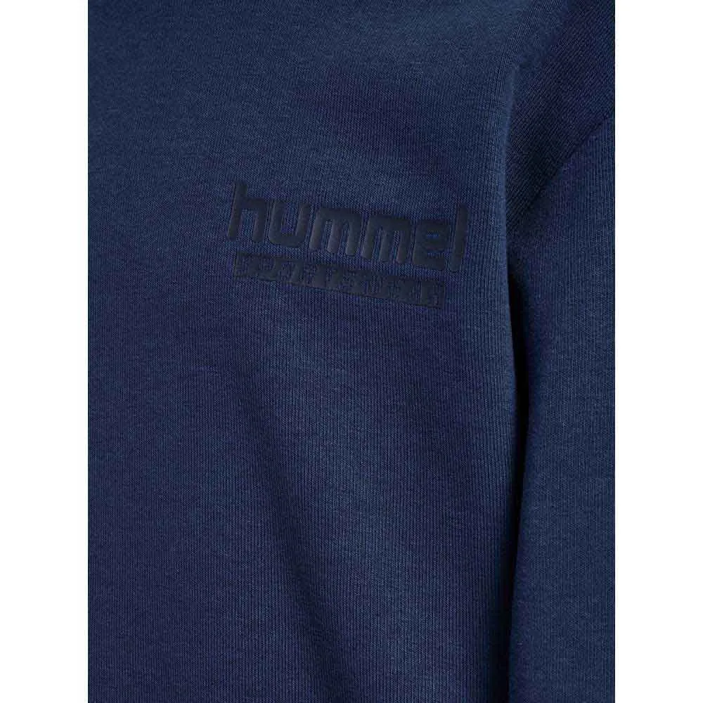 The set features a classic long-sleeve sweatshirt designed for timeless appeal and practicality. The comfortable crew neck offers a clean look, making it an excellent piece for layering on cooler days. This design, crafted without a hood and without a zipper, ensures maximum comfort and safety during active play, eliminating any unnecessary bulk or snags. The sweatshirt is finished with ribbed cuffs and a ribbed hem, which provide a snug and secure fit that helps keep warmth in and ensures the top stays perfectly in place, no matter how energetic the activity. The iconic HUMMEL chevrons adorn the sleeves, and a printed logo on the chest proudly displays the mark of quality and sporting heritage.