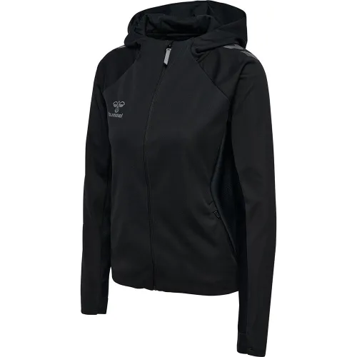 The hmlCIMA 2.0 Zip Hoodie Woman features a full front zipper and zipper pockets for secure storage of valuables. Designed for comfort, it has a regular fit and alastic waistband. A hummel logo on the chest completes the look.