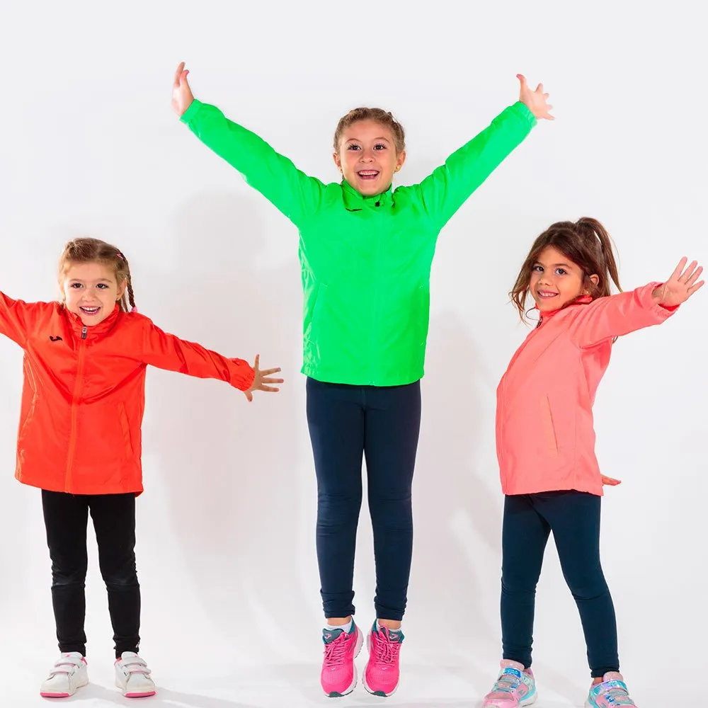 The JOMA Rain Jacket in Iris/Green Fluor is a stylish and practical outerwear option for kids. The jacket features a bright green fluor color with contrasting details in iris, creating a fun and eye-catching look. Made from durable materials, the jacket is water-resistant and perfect for protecting your child from the elements on rainy days. The jacket also includes a hood, full zipper closure, and two side pockets for added convenience. Whether your child is heading to school, playing outside, or running errands with you, the JOMA Rain Jacket is a must-have addition to their wardrobe.