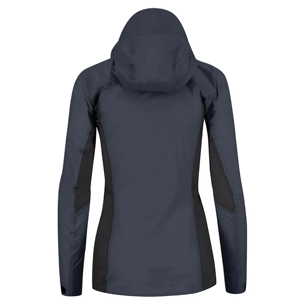 The extremely lightweight Lavaredo Rain Evo W Jacket protects you from water, snow, and wind.