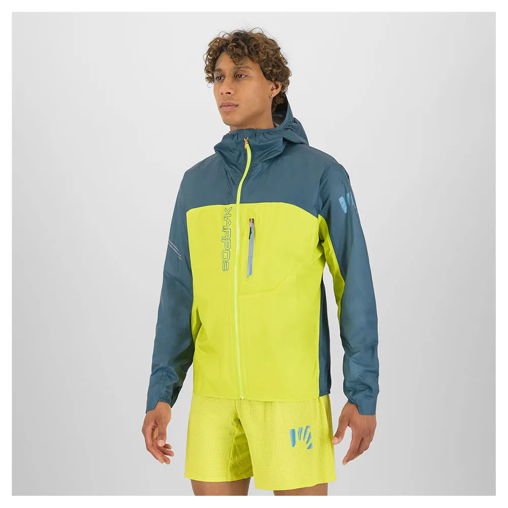Simple and easily compactible, the jacket is designed for trail running but is also perfect for hiking, mountain biking, and mountaineering.