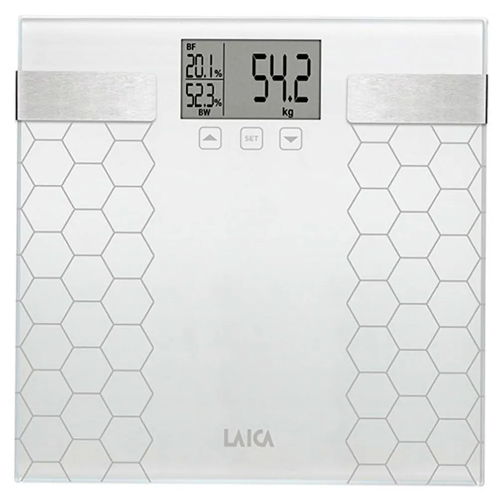 Digital bathroom scale with calculation of the body composition color white 180kg laica.