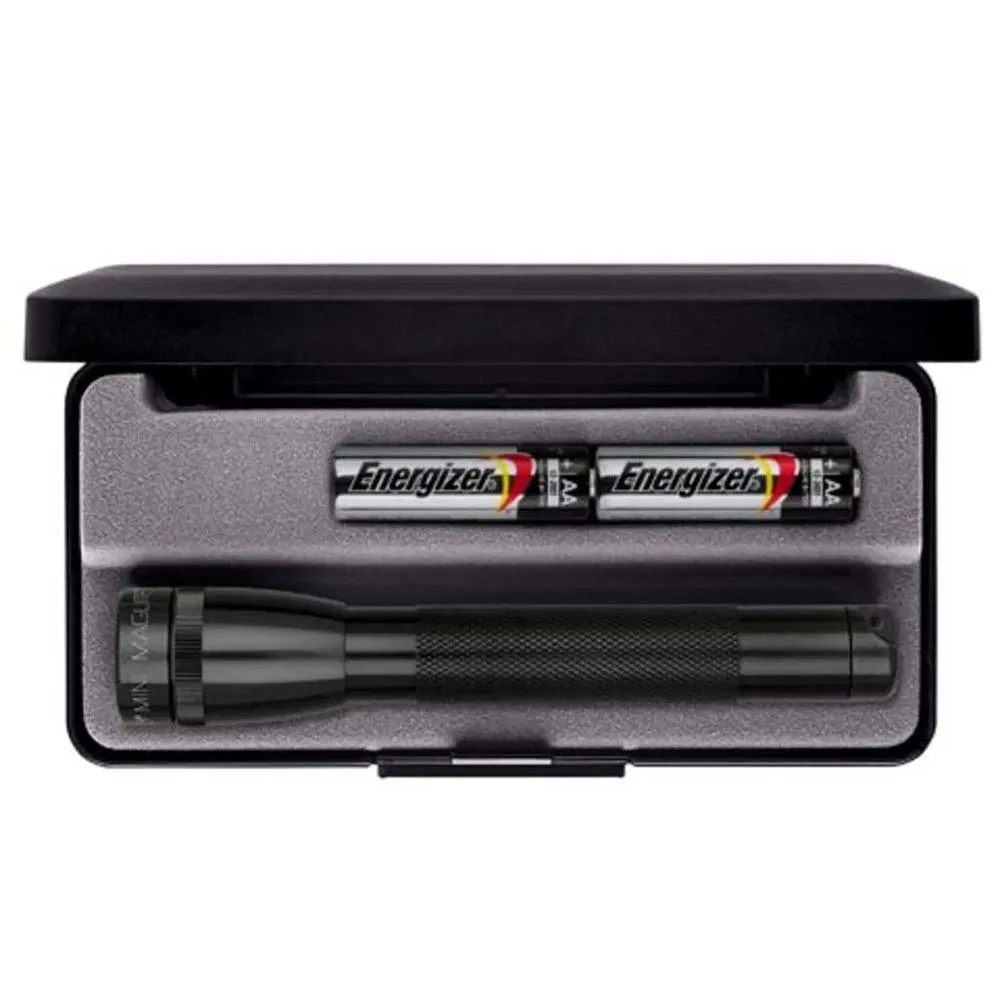 Experience the iconic Mini Maglite® AA flashlight, a symbol of robust design and reliability. Crafted from a high-strength, anodized aluminum alloy, it offers superior durability and corrosion resistance. Its powerful German-made Xenon bulb delivers a super-bright beam, easily adjustable from a tight spot to a wide flood with a simple twist of the head. Splash-proof (IPX4) and featuring a clever hands-free candle mode, it´s built for versatility. A spare bulb is conveniently stored in the tail cap, and it comes ready to use with 2 AA batteries