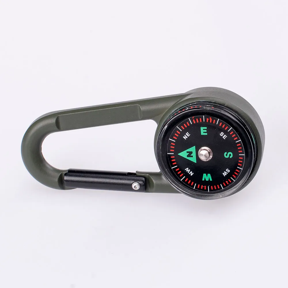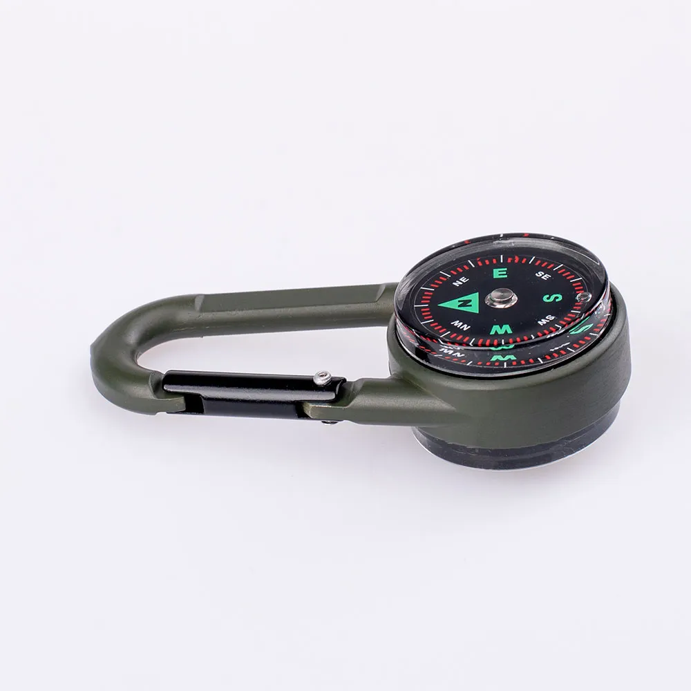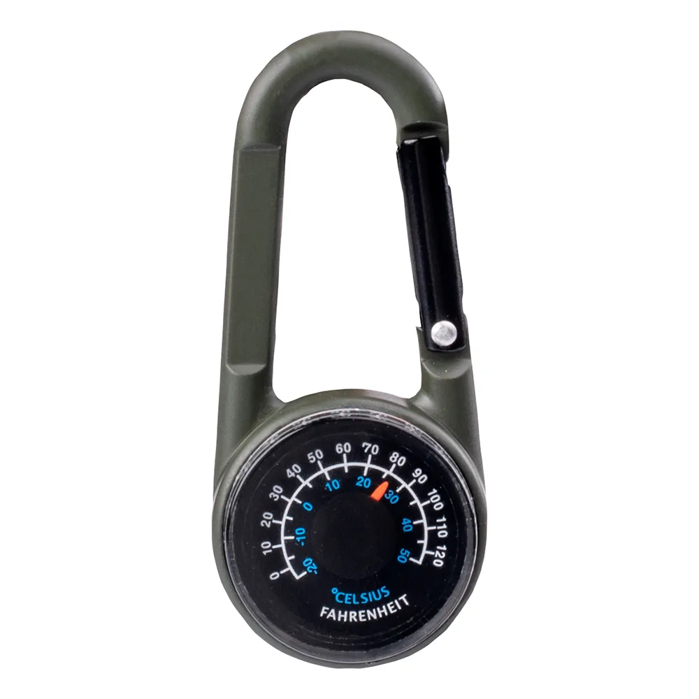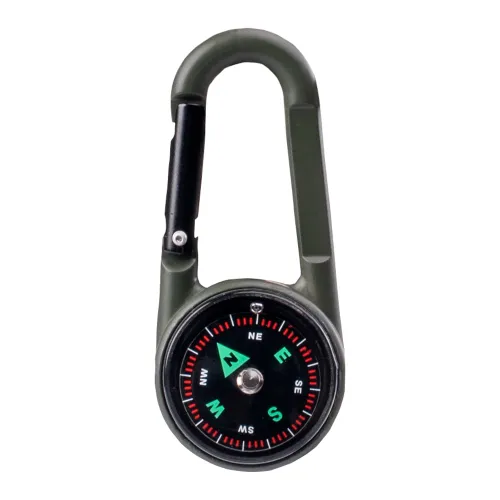 COMPASS, THERMOMETER, MOUNTAINEERING BUCKLE.