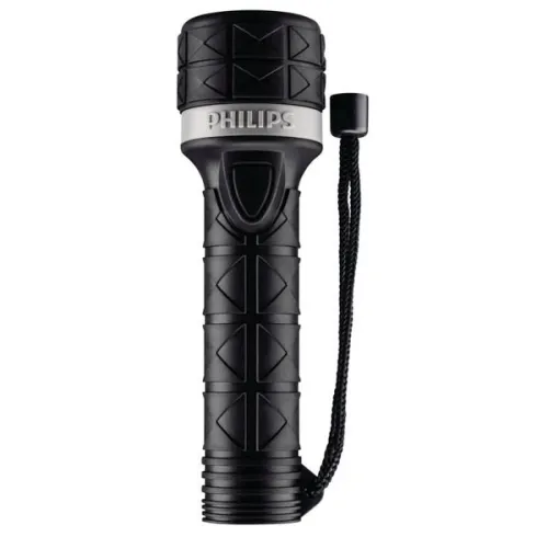 Illuminate your path with the Philips SFL5200/10 LED Flashlight. This powerful and reliable torch delivers a brilliant 300-lumen beam that cuts through darkness, reaching up to 200 meters. Built for any situation, its rugged body is shock-resistant and IPX4 water-resistant, ensuring dependable performance in rain or after accidental drops. Powered by two convenient AA batteries and featuring a secure non-slip grip, it´s the essential tool for your home, car, or outdoor adventures. Trust Philips for powerful light when you need it most