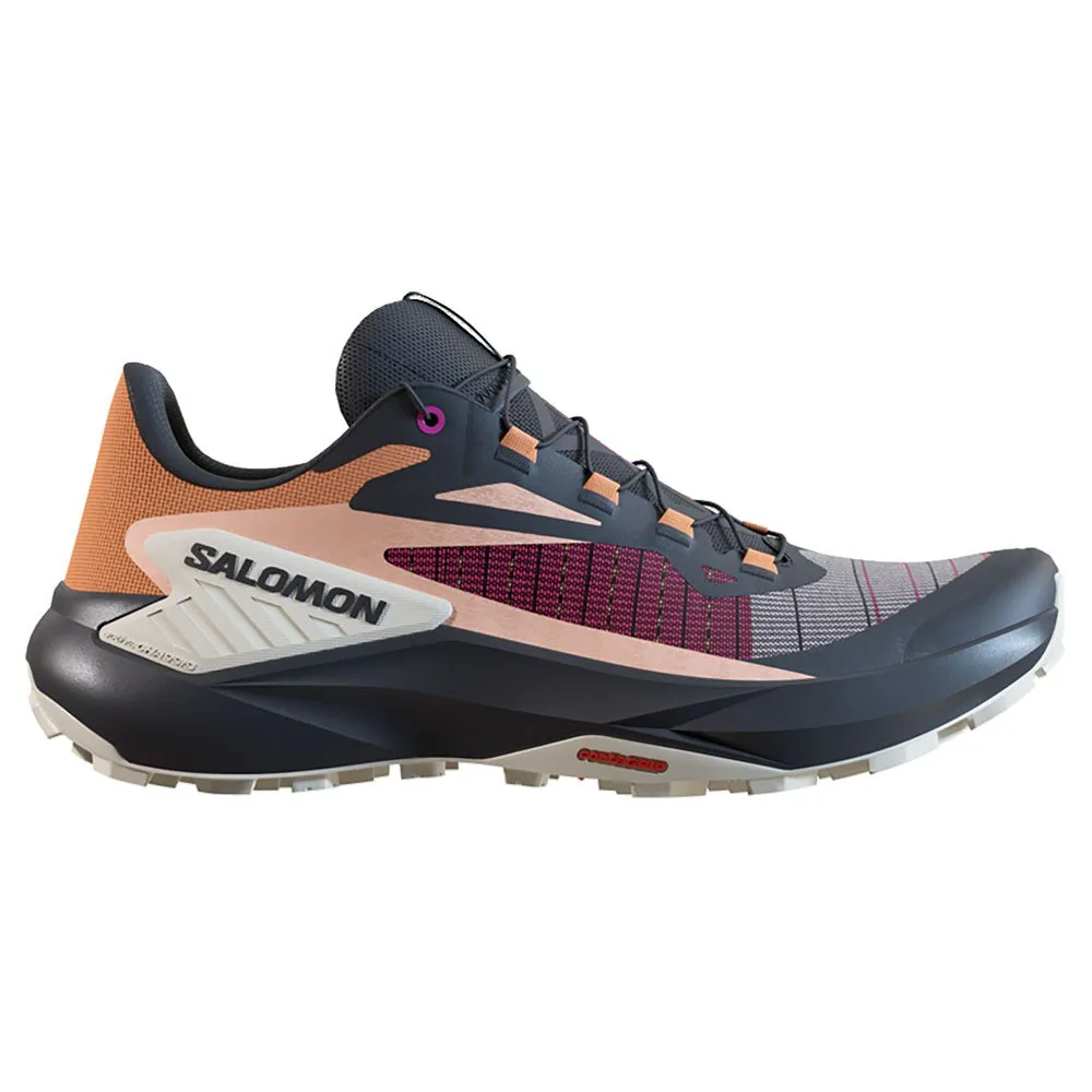 Take your run off the beaten track with the SALOMON Genesis, the ultimate shoe for any trail adventure. It delivers an unmatched experience by blending dynamic agility, cushioned comfort, and precise support on any terrain. The durable Matryx® upper provides a secure foothold, while the activeCHASSIS™ ensures fluid, confident movement. Paired with responsive energyFOAM and a high-grip All Terrain Contagrip® outsole, the Genesis gives you the freedom to explore the toughest conditions with absolute confidence