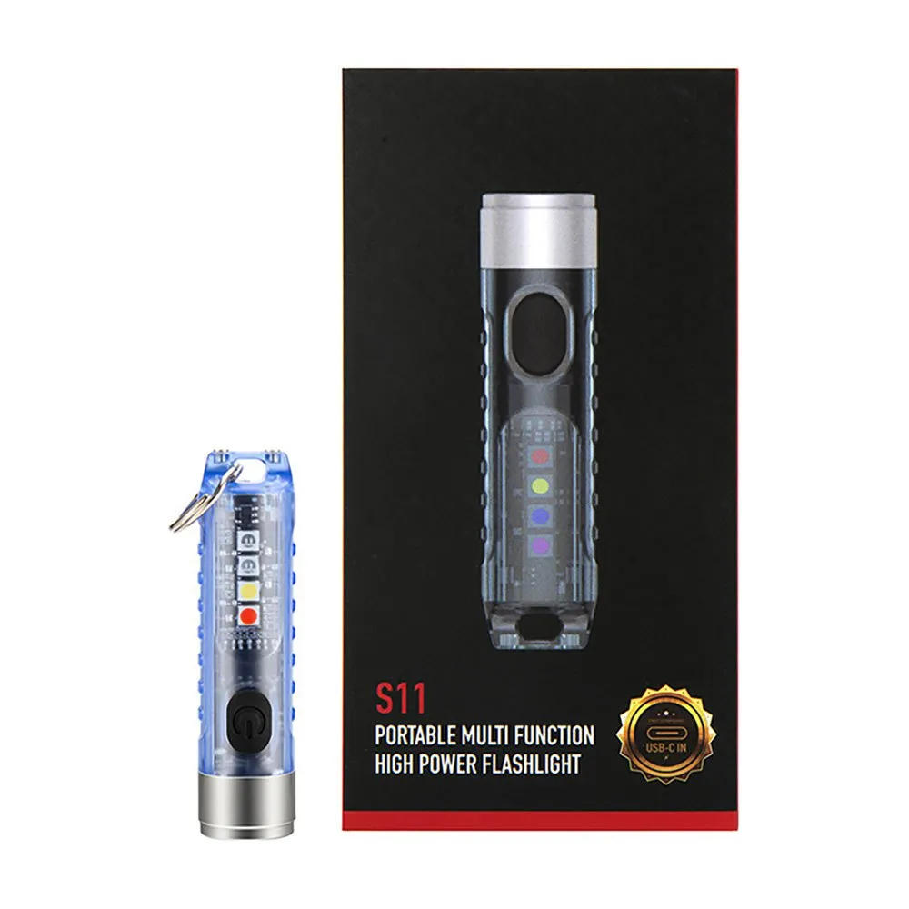 Different uses by pressing its button, one press to turn the white flashlight on or off, double press to choose light power and triple press to enter the different colors of light (side lighting of the flashlight).