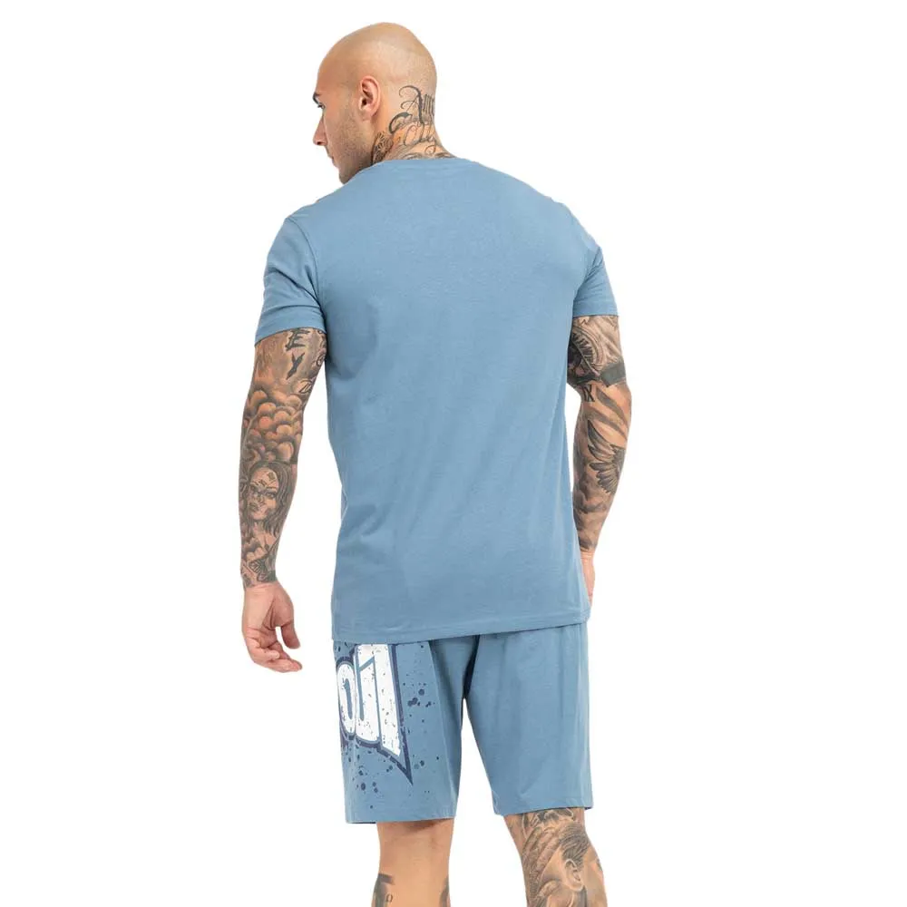 Set consisting of a t-shirt and shorts. Both pieces have a contrasting logo print on the chest and left thigh respectively. The shorts have two pockets at the front and one patch pocket at the back.
