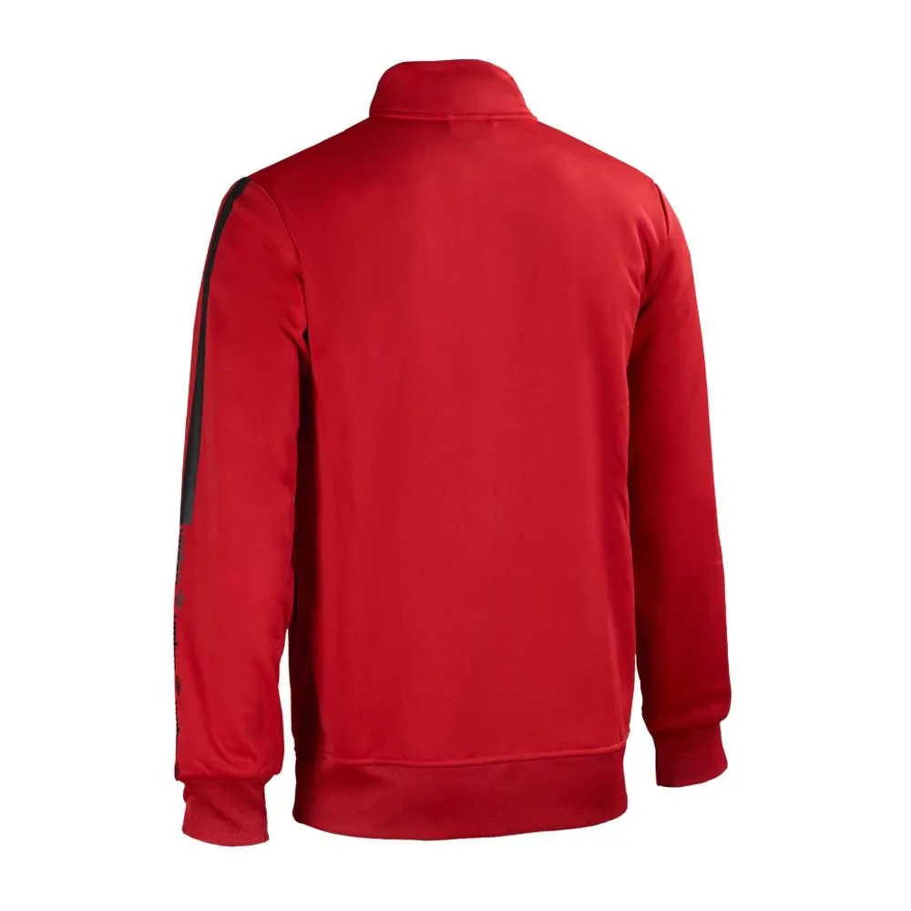 The UMBRO Kabue Tracksuit Jacket in red is a trendy and versatile choice for kids' sporty and casual wear. Made from high-quality materials, this tracksuit jacket is designed to provide comfort and durability, making it perfect for active youngsters. It features a full front zipper for easy on and off, as well as a stand-up collar to provide extra protection against the elements. The vibrant red color adds a pop of energy to any outfit, making it a stylish choice for both sports activities and everyday wear. With its relaxed fit and ribbed cuffs and hem, this tracksuit jacket offers a comfortable and secure fit, ensuring unrestricted movement. Whether your child is playing sports, running errands, or simply hanging out with friends, the UMBRO Kabue Tracksuit Jacket in red is an excellent addition to their wardrobe.