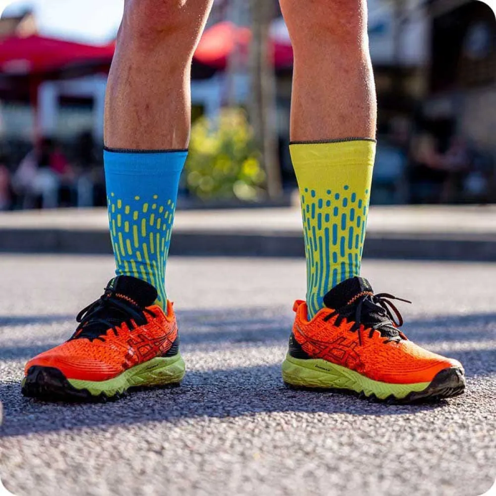 - Striking designs on the entire surface of the sock, without limitations. Total customization at every angle.