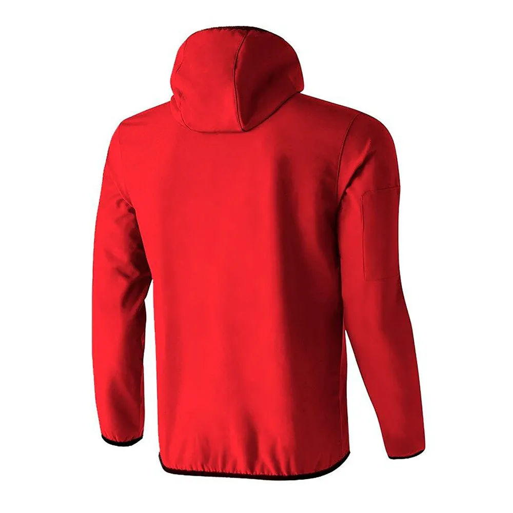Chaqueta técnica softshell unisex con capucha en color rojo.