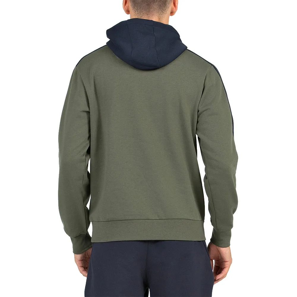 Esta sudadera con capucha cerrada presenta un diseño clásico de cuello redondo, ofreciendo una silueta limpia y aerodinámica que es atemporal y fácil de llevar. La ausencia de cremallera realza su perfil elegante y garantiza la máxima comodidad al usarla debajo de una chaqueta. Su elemento de diseño destacado es la capucha en contraste y las bandas a juego, que crean una estética dinámica y deportiva que llama la atención. Este cuidadoso bloqueo de color añade un toque de estilo moderno, diferenciándola de las sudaderas comunes.
