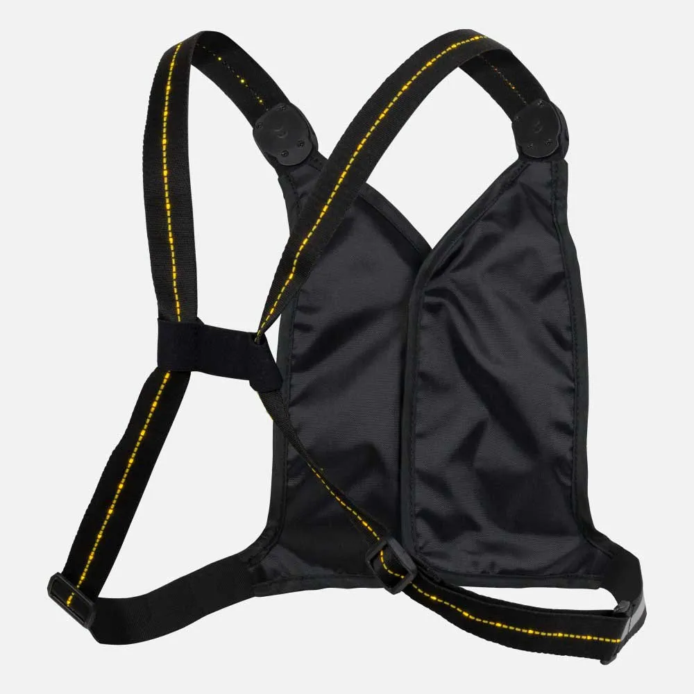 - Chaleco reflectante ultraligero que también se ilumina para ayudar a ser visto en condiciones de poca luz.