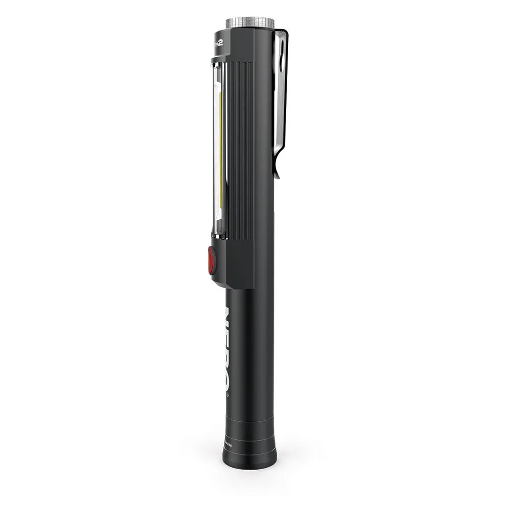 El Nebo grande Larry 2 produce 500 lúmenes con la luz de la mazorca y 200 lúmenes de la linterna superior. La luz roja COB es perfecta para la señalización de socorro o las emergencias en la carretera. El clip de acero y la base magnética brindan convenientes opciones de iluminación de manos libres.