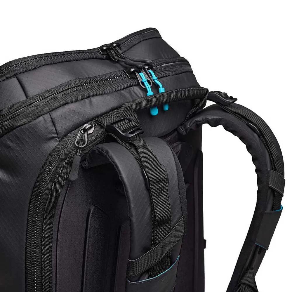 Mitat: Suunniteltu tarjoamaan maksimaalisen säilytystilan samalla kun se pysyy ergonomisena ja helppona kantaa. Osastot: Päätila, vedenpitävä pohjaosasto, pehmustettu läppäritasku, useita sisäisiä ja ulkoisia vetoketjullisia taskuja, kaksi verkkopullotelinettä, ulkoinen kypäräpussi.