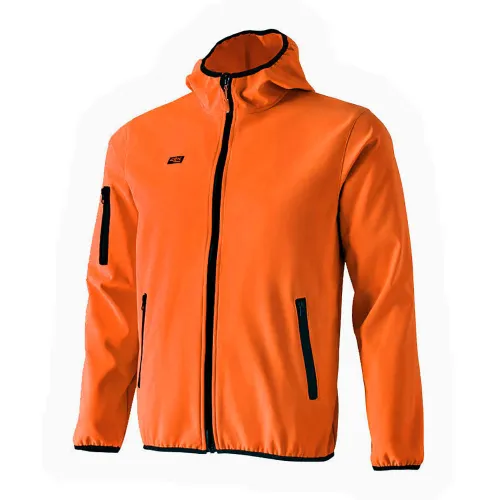 Unisex tekninen takki kaksikerroksisella softshell-kankaalla oranssissa värissä. Se on korvaamaton vaate jokaisen urheilijan vaatekaapissa sen toiminnallisuuden ja monipuolisuuden vuoksi, koska kevyen ulkoilutakin lisäksi sitä voidaan käyttää myös rentona urheiluvaatteena. Softshell-kangas eristää tuulta ja kosteutta ja suojaa myös kevyeltä sateelta (se on vettä hylkivä kangas, mikä tarkoittaa, että vesi valuu sen pinnalta). Keveytensä ja joustavuutensa ansiosta se sopii erinomaisesti harjoitteluun kylmällä tai märällä säällä ja kevyessä sateessa. Se on täydellinen takki ennen harjoittelua tai sen jälkeen, mutta myös rentoon käyttöön sen rennon ilmeen ansiosta. Siinä on elastiset vahvikkeet hihansuissa, vyötäröllä ja hupussa paremman istuvuuden ja lämmöneristyksen takaamiseksi. Kaikki vetoketjut ovat näkymättömiä tuulen ja sateen eristyksen takaamiseksi. Softshell 42K -takki on loistava valinta kevyeksi takiksi juoksuun ja maastojuoksuun, mutta myös vaellukseen, sauvakävelyyn ja erilaisiin ulkoiluaktiviteetteihin.