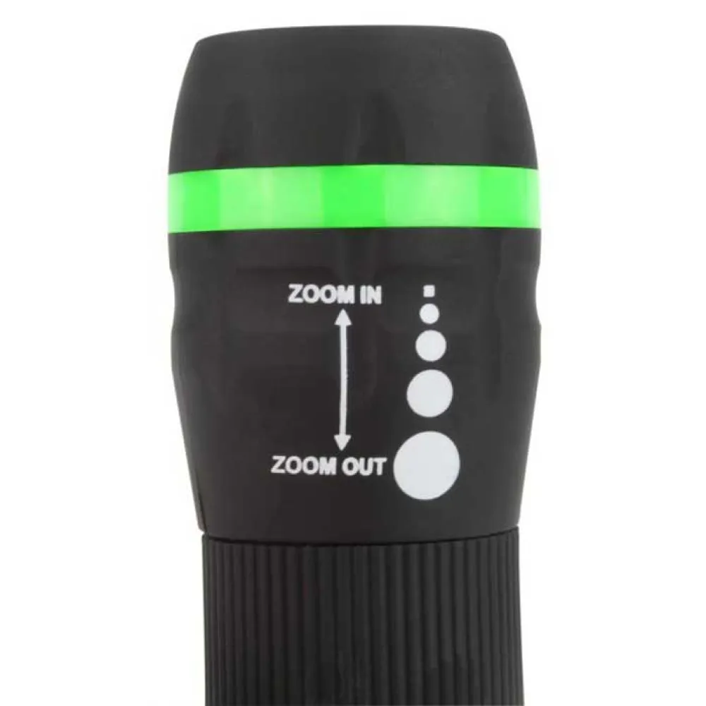 1W LED-lamppu zoom-toiminnolla, kumipinnoitettu pinta, värillinen rengas heijastimen kotelossa ja rannehihna, sis.