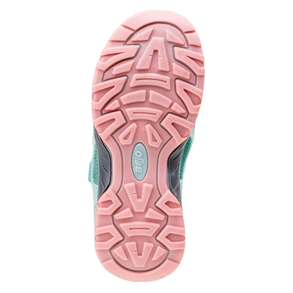 BEJO Nestir -sandaalit on suunniteltu tukemaan kasvavia jalkoja kaikessa toiminnassa. Kevyt rakenne ehkäisee väsymystä, mahdollistaen tuntikausia keskeytymätöntä hauskanpitoa. Keskeinen etu on poikkeuksellisen hengittävä muotoilu, jossa on pehmeä verkkokangasvuori, joka edistää jatkuvaa ilmankiertoa. Tämä auttaa pitämään jalat viileinä ja kuivina jopa lämpimimpinä kesäpäivinä, vähentäen epämukavuutta ja varmistaen miellyttävän käyttökokemuksen. Anatomisesti muotoiltu pohjallinen tarjoaa hellävaraisen iskunvaimennuksen, mukautuen jalan luonnolliseen muotoon ja tarjoten yksilöllistä tukea siellä, missä sitä eniten tarvitaan.