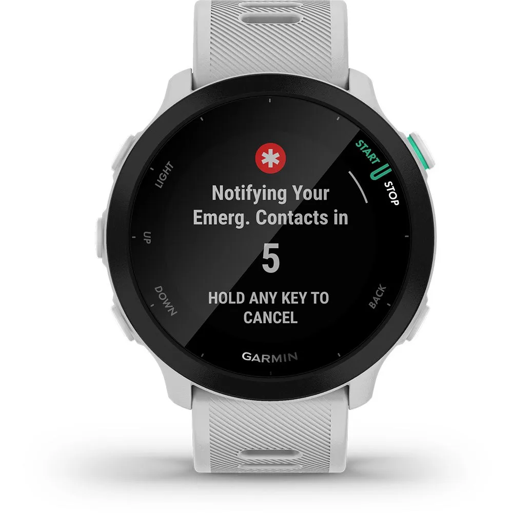 Näe itsesi juoksijana Forerunner 55:n avulla. Tämä helppokäyttöinen GPS-älykello menee pidemmälle kuin pelkkä vauhti ja syke, tarjoten henkilökohtaista opastusta auttaakseen sinua harjoittelemaan älykkäämmin. Saat päivittäisiä ehdotettuja harjoituksia, palautumisajan ohjeita ja kisapäivän strategian PacePro™-ominaisuuden avulla. Seuraa kaikkia aktiviteettejasi sisäänrakennetuilla profiileilla juoksuun, pyöräilyyn, HIIT-harjoitteluun ja uintiin. Kuuntele kehoasi edistyneillä hyvinvointiominaisuuksilla, kuten Body Battery™ ja kuntoikä. Jopa kahden viikon akunkeston ansiosta voit keskittyä enemmän juoksuusi ja vähemmän lataamiseen