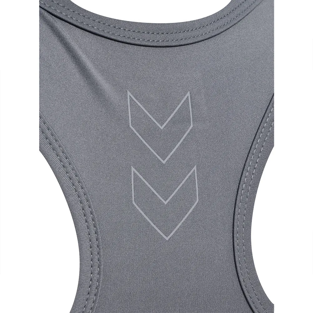 Tiukka istuvuus ja suuri joustavuus, tässä hummelin urheiluliivissä on myös painettu logo ja chevronit.