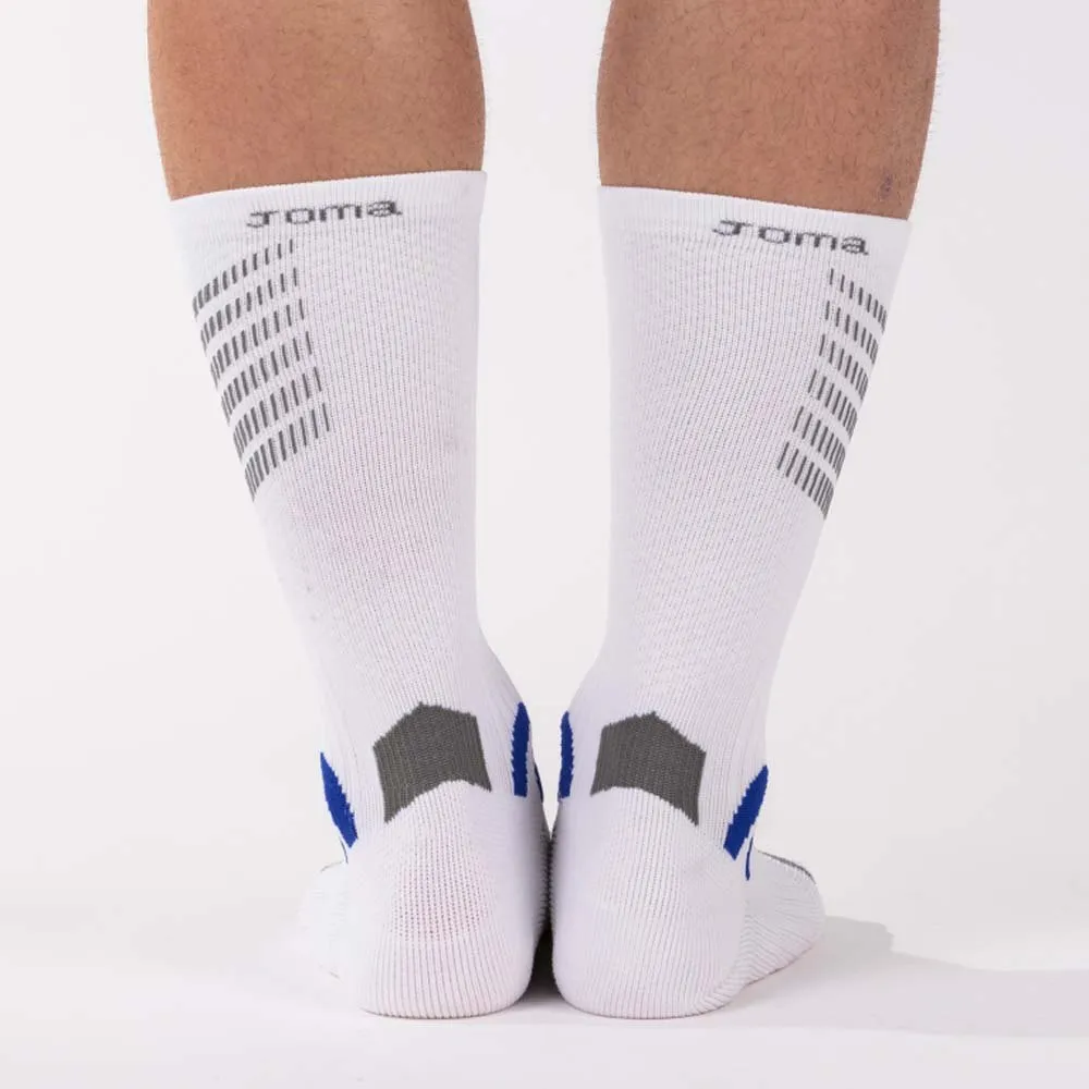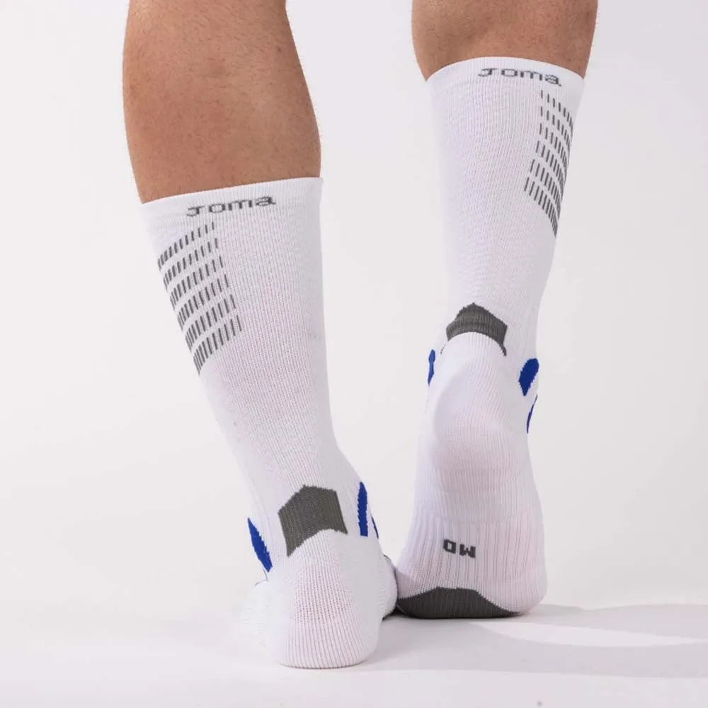 JOMA Kompressiosukan jokainen yksityiskohta on valmistettu toiminnallisuutta ja tuntumaa silmällä pitäen. Ergonominen muotoilu tarjoaa poikkeuksellisen vakauden nilkallesi ja tärkeää tukea jalkapohjallesi, vähentäen yleisten venähdysten ja epämukavuuden riskiä. Kangasrakenne keskittyy tarjoamaan turvallisen mutta joustavan istuvuuden, joka liikkuu kanssasi, estäen rypistymistä ja liukumista kengän sisällä. Tämä tiukka istuvuus myös minimoi kitkaa, joka on keskeinen tekijä kivuliaiden rakkuloiden ja hankaumien ehkäisyssä, antaen sinun keskittyä täysin suorituskykyysi ilman häiriötekijöitä. Hengittävä kangassekoitus hallitsee kosteutta, siirtäen hikeä pois iholta pitääkseen jalkasi kuivina ja mukavina ensimmäisestä minuutista viimeiseen.
