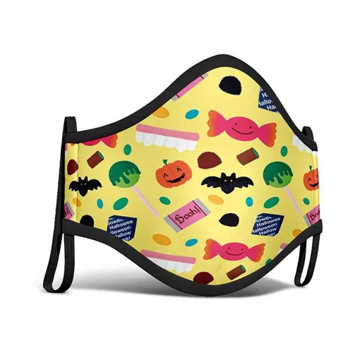 Mukaansatempaava muotoilu, joka kannustaa käyttöön: Iloisen ja värikkään karkkikuvion ansiosta tämä maski vangitsee lasten mielikuvituksen, tehden heistä halukkaampia ja jopa innoissaan käyttämään sitä. Se on täydellinen ratkaisu vanhemmille, jotka haluavat kannustaa johdonmukaiseen maskin käyttöön positiivisella ja vaivattomalla tavalla. Katseenvangitsija muotoilu tekee siitä hauskan asusteen mihin tahansa asuun.