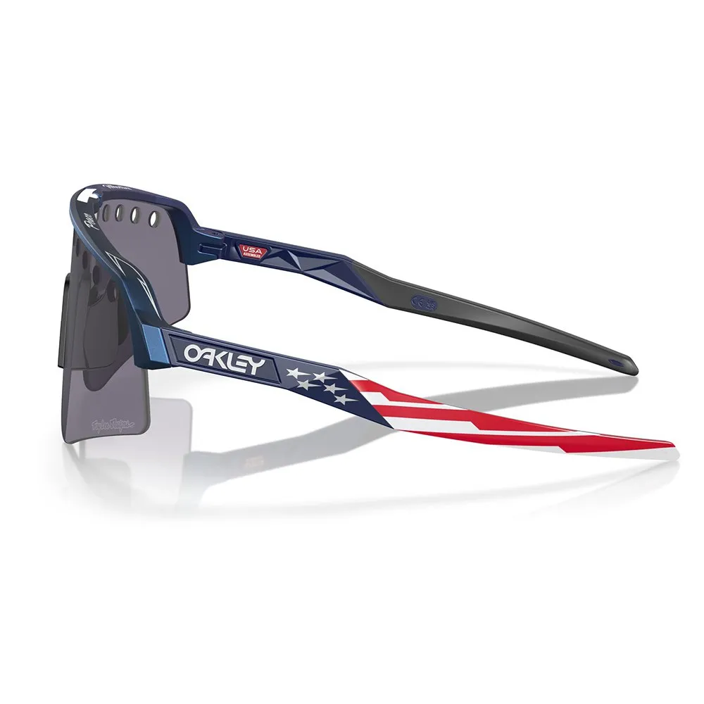 Tämän vuoden ainutlaatuinen TLD Sutro Lite Sweep -amerikkalaisaiheinen kypärä herättää nopeuden ja tyylin tunteen rikkaalla sinisellä värivaihtelumaalilla ja nopeilla tähdillä ja raidoilla, jotka roikkuvat korvanvarsien takana. Klassisilla raidallisilla yksityiskohdilla ja Peace & Wheelies -typografialla otsan yläosassa se tarjoaa puhtaan siluetin, jossa on hauskoja yksityiskohtia. Alkuperäisen Oakley Factory Pilots -kypärän kunniaksi linssissä on kaiverrettu Oakley-logo ilmanottoaukkojen välissä ja Troy Lee Designs -merkki Prizm™ Grey -linssin oikeassa alareunassa.
