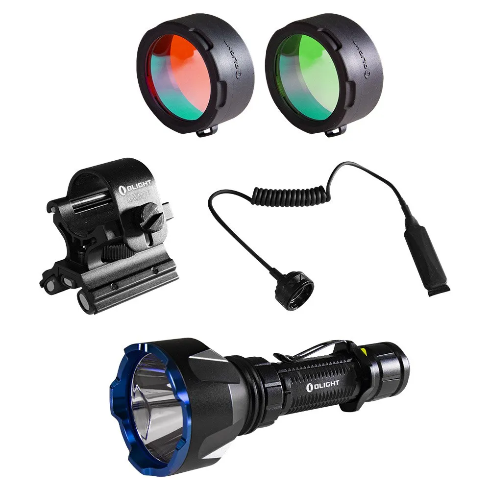 LED-taskulamppu ladattavalla metsästyssarjalla, jonka enimmäisteho on 1 100 lumenia ja kantama 1 000 metriä. Sarja sisältää seuraavat tarvikkeet: taskulamppu akulla, magneettikiinnike, kaukosäätimen painike, USB-latauskaapeli, punainen suodatin, vihreä suodatin, taktinen rengas, turvanauha ja käyttöohje.