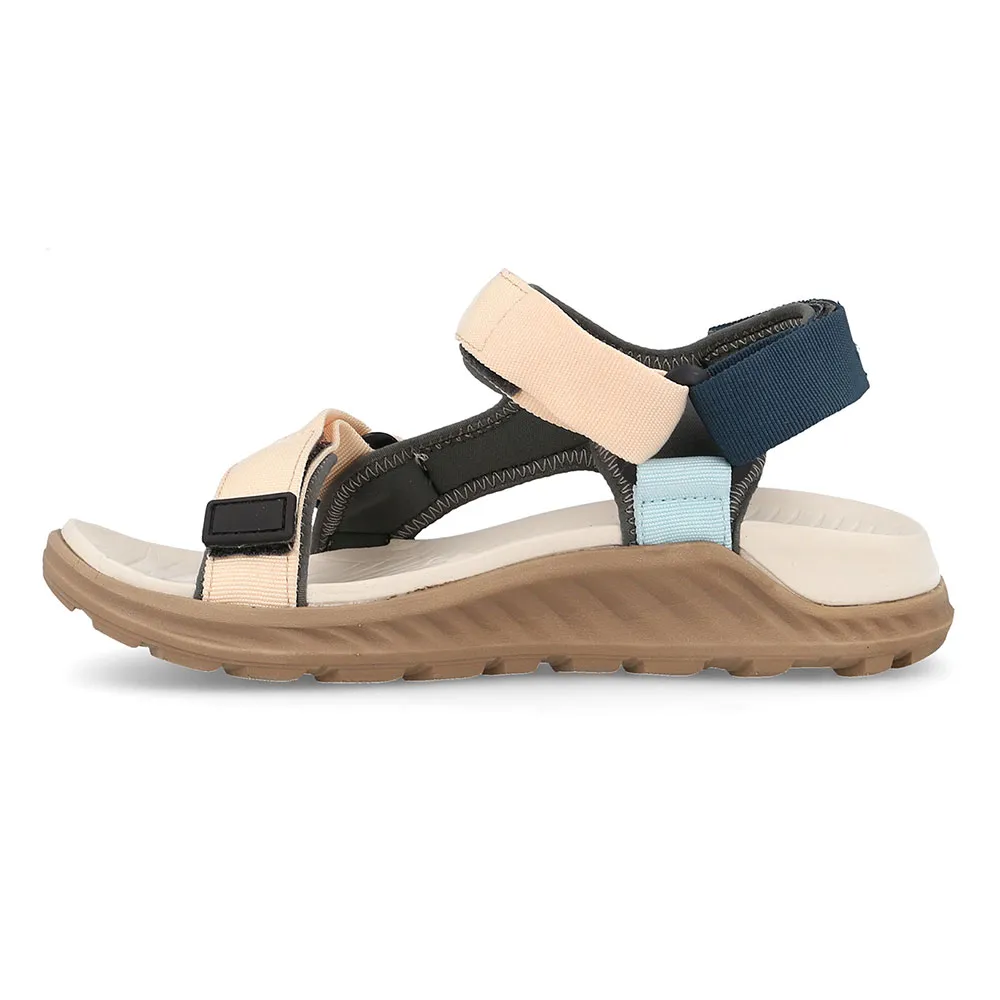 Jarillan poikkeuksellisen suorituskyvyn ytimessä on sen huolellisesti suunniteltu rakenne. Kevyt ja hengittävä tekstiilipäällinen kietoutuu hellävaraisesti jalan ympärille tarjoten pehmeän, ihoystävällisen istuvuuden, joka sopii täydellisesti lämpimään säähän. Avokärkinen, monihihnainen muotoilu ei ainoastaan luo nykyaikaista ilmettä, vaan myös edistää maksimaalista ilmavirtausta pitäen jalkasi viileinä ja raikkaina aamusta iltaan. Täysin säädettävät tarranauhat jalkapöydän ja nilkan yli takaavat täysin mukautetun ja turvallisen istuvuuden, mukautuen vaivattomasti jalkasi ainutlaatuiseen muotoon ja tarjoten horjumattoman vakauden jokaisella askeleella.