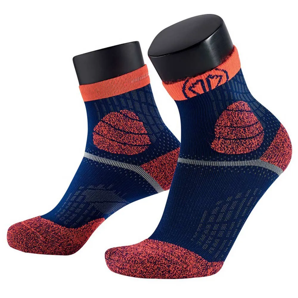 Polkujuoksusukat, joissa vahvistetut nilkka-, kantapää- ja varvasosat. Grip Band tarkoittaa, että sukka, pohjallinen ja kenkä toimivat paremmin yhdessä. Nauti todellisesta Trail Running mukavuudesta ja suojasta.