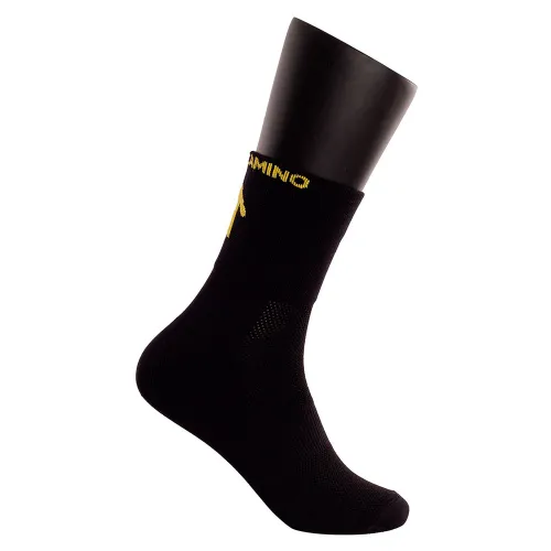 Nämä polvipituisissa sukissa on ainutlaatuinen design, jossa on keltainen kuori ja nuoli. Sukkien yläosassa on teksti "buen Camino". Ne on valmistettu korkealaatuisesta materiaalista, ja ne ovat täydelliset liittolaiset seikkailuusi.