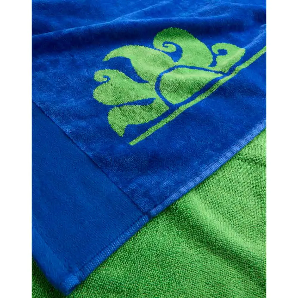 Pehmeä puuvillafrotee, maksikoko ja ikoninen logo kuvaavat täydellistä rantapyyhettä. Ota se mukaasi lomalle ja se on täydellinen liittolainen rentoutumiseesi ja toivottaaksesi sinut tervetulleeksi uinnin ja rantatoimintojen jälkeen. Koko: 100x180 cm, 440 gr. Koostumus: 100% puuvillaa.