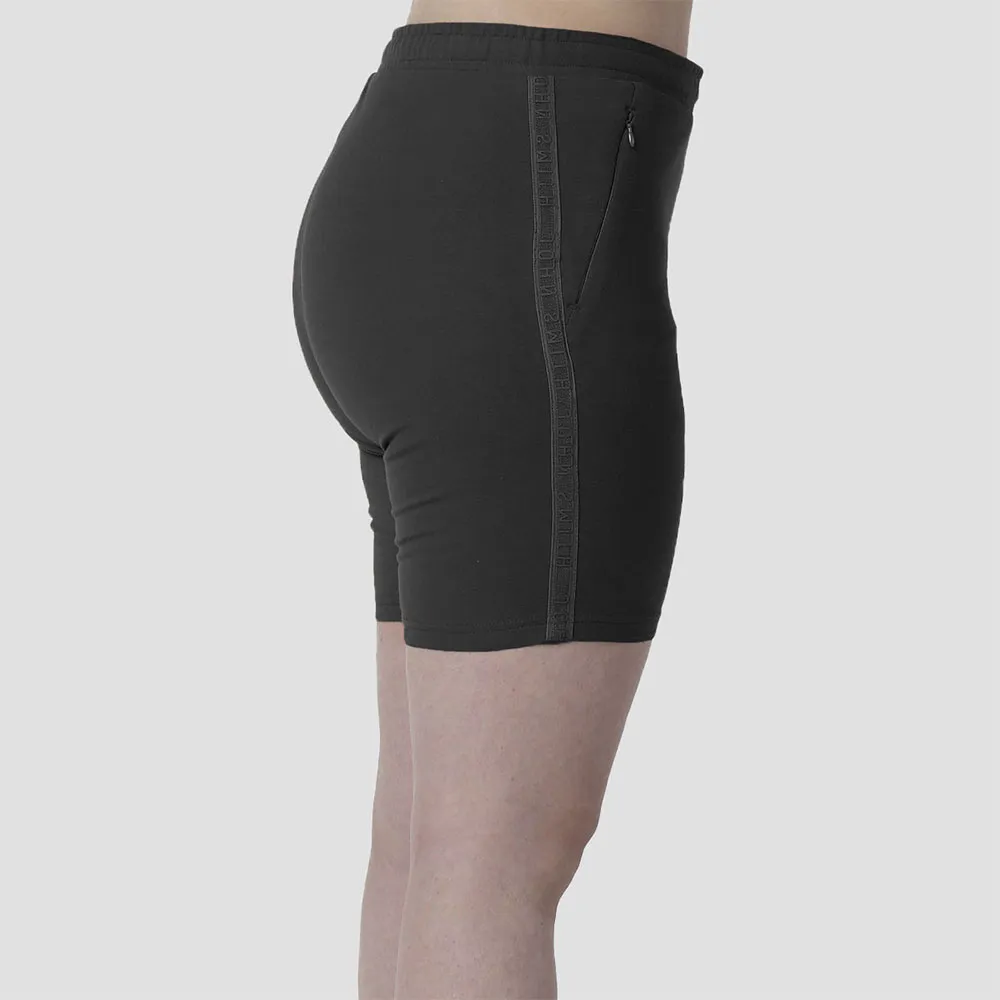SHORT AVEC TAILLE LARGE, POCHES AVEC FERMETURES ÉCLAIR INVISIBLES, CORDON DE SERRAGE À LA TAILLE POUR UN MEILLEUR AJUSTEMENT ET LOGO IMPRIMÉ.