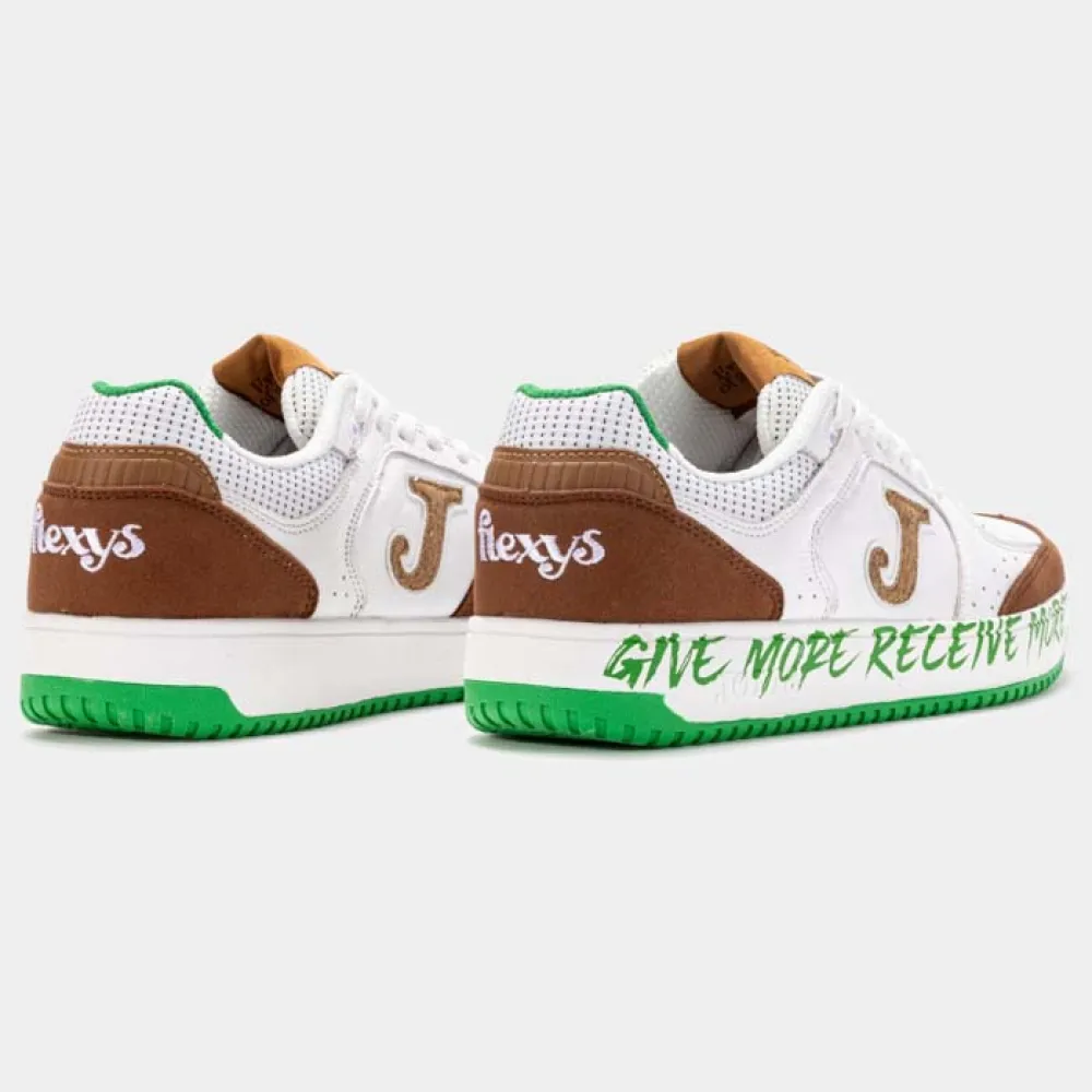 Les baskets Flexys sont l´évolution des chaussures de futsal historiques Top Flex. Pour cette saison, nous avons développé une ligne spéciale intégrant différents types de matériaux dans la tige afin que chaque variante soit unique. Elles conservent les principaux avantages du modèle original : flexibilité et durabilité, en plus du confort d´une chaussure décontractée. De plus, elles restent l´une des options les plus durables de Joma grâce à leur fabrication partielle à partir de matériaux recyclés.