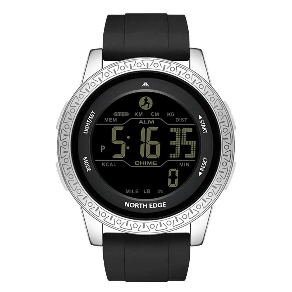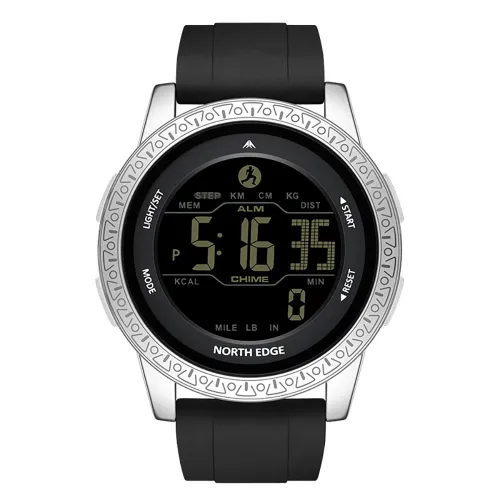 Montre de sport d´extérieur North Edge APOLLO – légère, durable et conçue pour les activités de plein air. L´écran FSTN reste clair sous la lumière du soleil et est économe en énergie. Ne pesant que 63g, elle est dotée d´un boîtier en alliage de zinc avec verre résistant aux rayures et d´un bracelet en silicone confortable. Idéale pour l´entraînement ou les aventures en plein air, l´APOLLO offre un suivi fiable et pratique de l´heure et de l´activité.