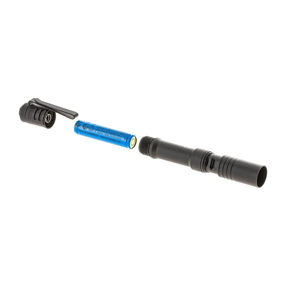 Une batterie Li-Ion intégrée alimente la lampe torche et se recharge via un câble USB. Un manchon métallique à l´avant protège le port de charge de l´humidité et des dommages physiques. Un clip de poche amovible supplémentaire maintient la lampe torche dans la poche. Il permet également de la fixer sur la visière d´un chapeau pour une utilisation mains libres. Grâce à sa taille ultra-compacte et à sa puissante LED, la Micro Stream est un choix parfait pour une utilisation et des applications EDC.