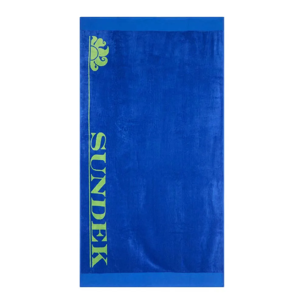 Éponge de coton douce, taille maxi et logo emblématique décrivent la serviette de plage parfaite.