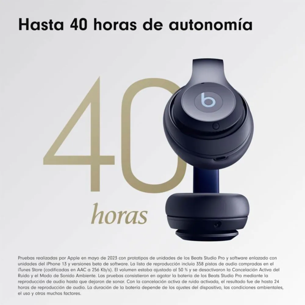 Apple Beats Studio Pro, cuffie con cancellazione attiva del rumore, audio spaziale e 40 ore di autonomia, in blu navy.