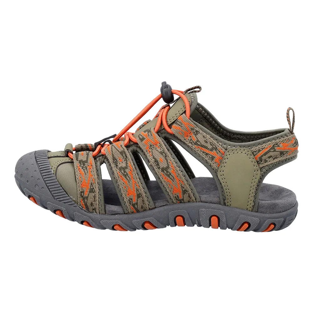 Sandalo outdoor con costruzione a ragno e punta chiusa, versione KIDS del modello adulto da uomo esistente, KIDS SAHIPH presenta una tomaia realizzata con fettucce in tessuto e sottopiede in microfibra.