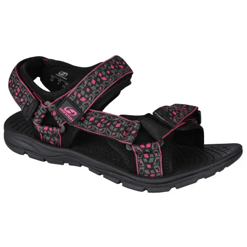 Sandali unisex ideali per viaggiare così come per il tempo libero. La scarpa ha una suola robusta con un plantare interno strutturato che impedisce lo scivolamento del piede e cinghie imbottite comode e larghe. Disponibile in diverse varianti di colore e anche in una tenue sfumatura di grigio.
