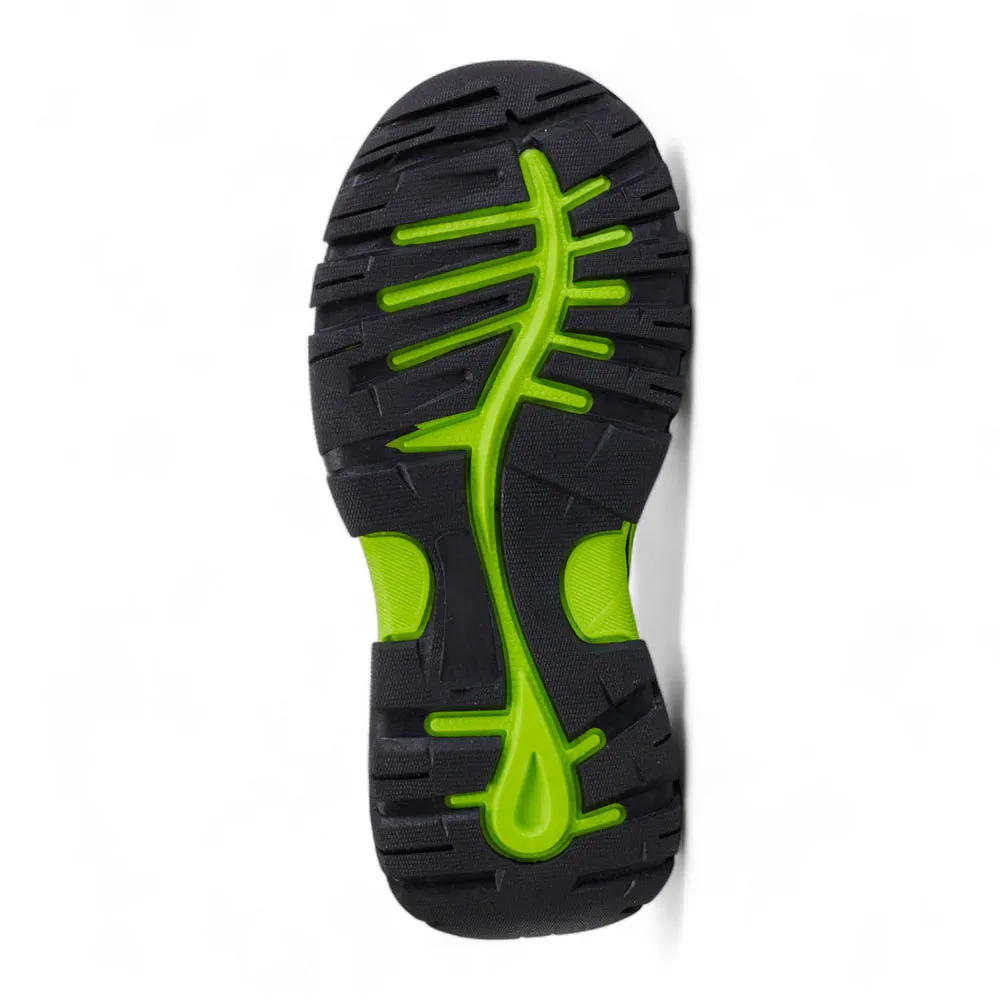 Ideale per l´estate, nonostante la sua struttura aperta, non rinuncia alla robustezza con la suola in gomma con punta rinforzata, che proteggerà le dita dei più piccoli.