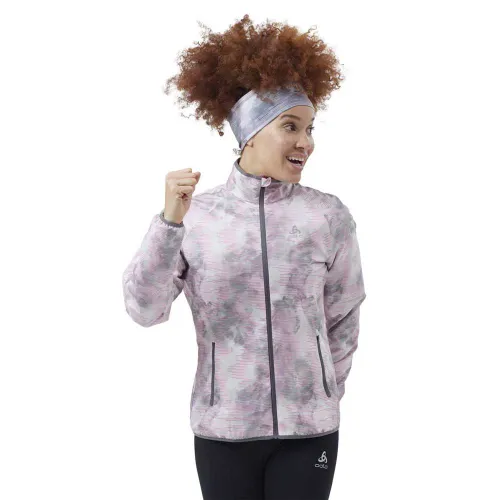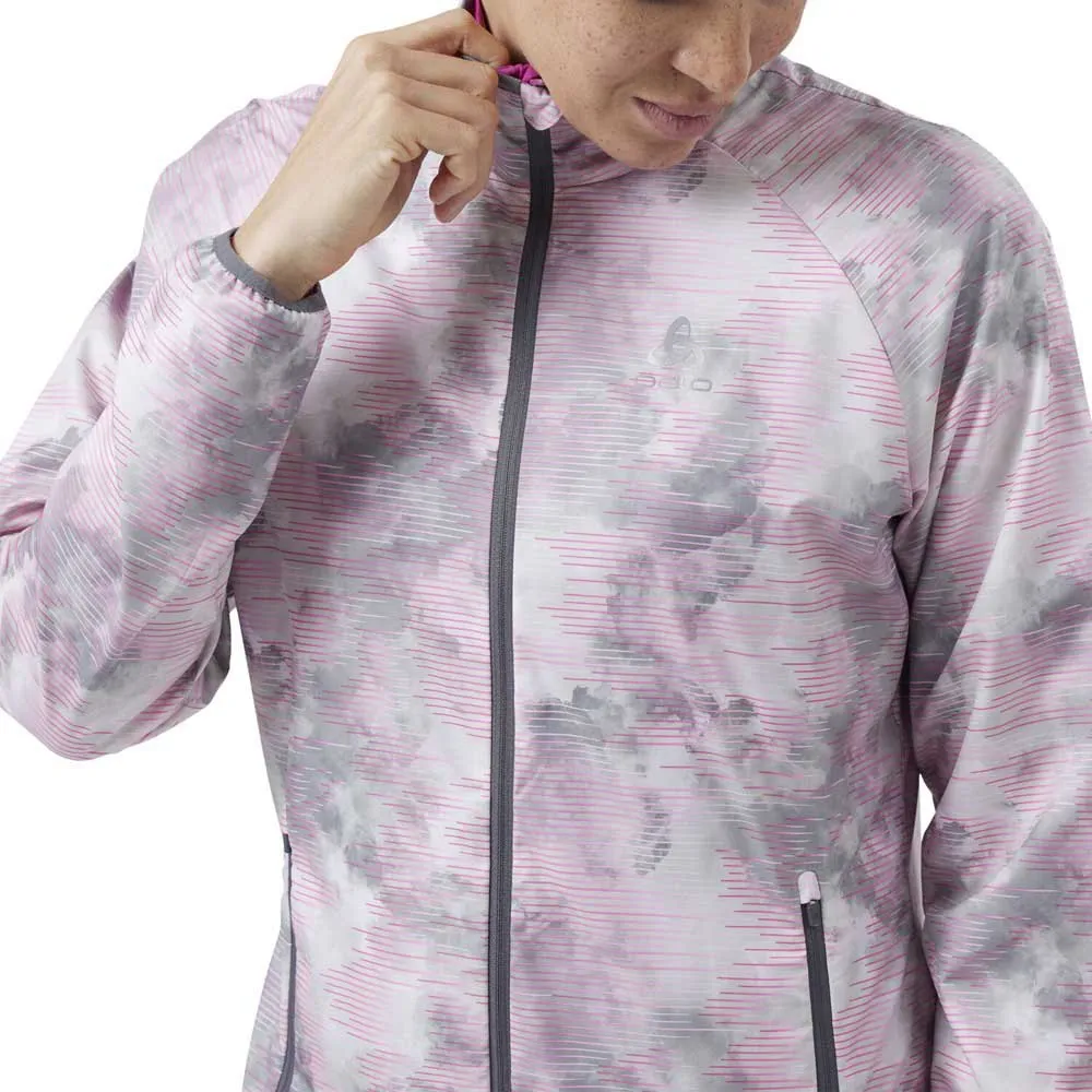 Progettata pensando allo stile e all'allenamento quotidiano, la giacca da corsa con stampa Essentials Light di ODLO è realizzata in tessuto antivento DWR riciclato al 100% e privo di PFC.