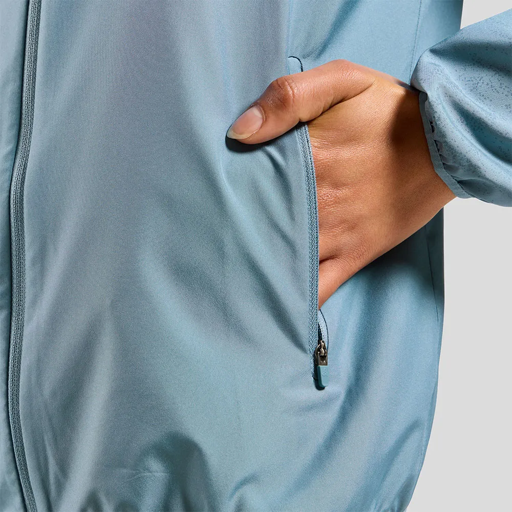 Rifinita con dettagli riflettenti per una visibilità a 360 gradi, fori tagliati al laser per la ventilazione, due tasche con cerniera per gli oggetti essenziali da portare sempre con sé e una finitura idrorepellente DWR senza PFC, questa è una giacca da usare per molti chilometri quando il vento si fa sentire.