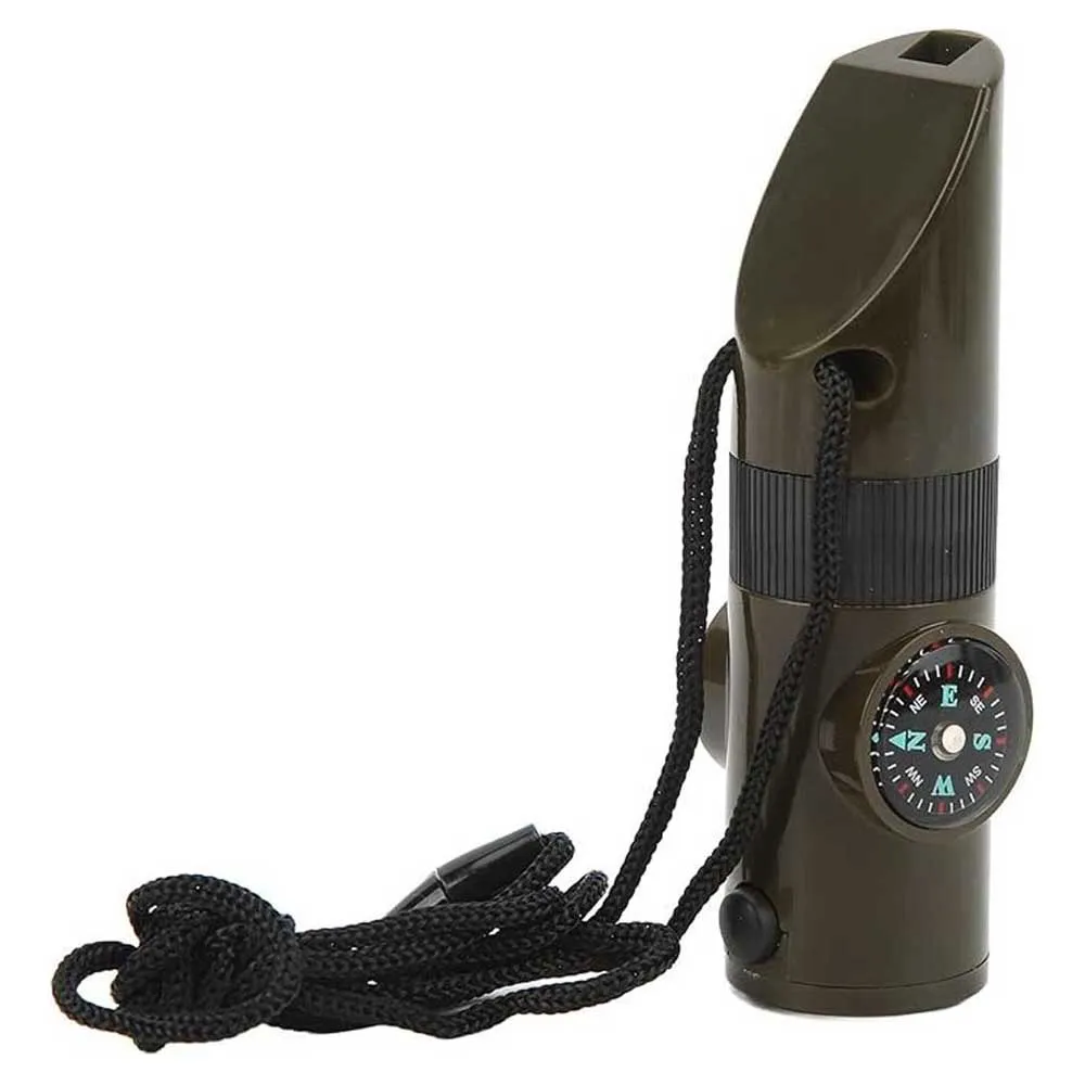 7 strumenti in un unico prodotto: fischietto, torcia, bussola, lente d´ingrandimento, termometro, specchietto di segnalazione e contenitore. Questa bussola è l´articolo perfetto da portare con te nelle tue avventure all´aria aperta. Ha un cordino per poterla indossare al collo e usarla comodamente.