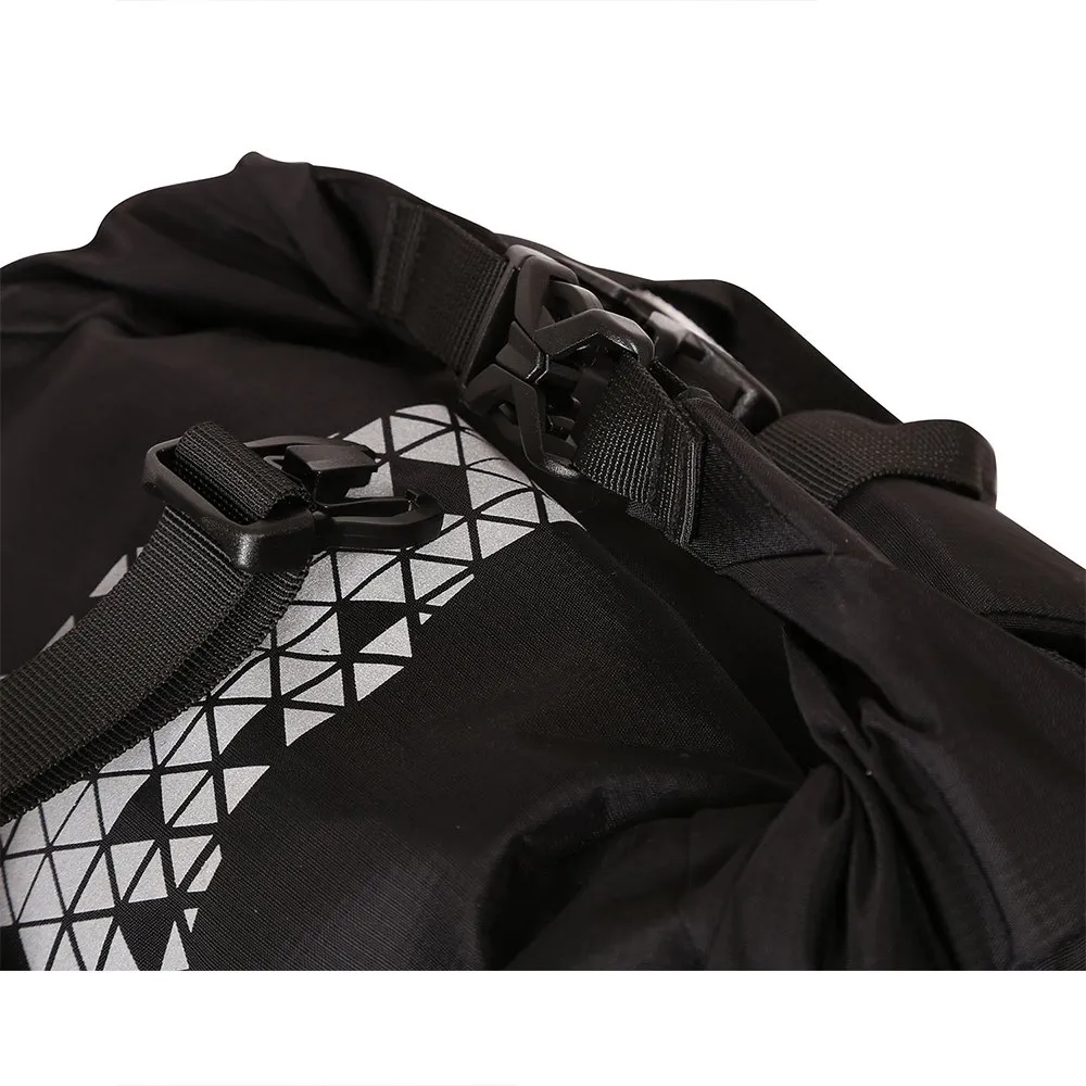 Ritsvakken aan de voorkant en lange ritstrekkers bieden snelle toegang tot je spullen, terwijl compressieriemen en een trekkoord alles op zijn plaats houden.