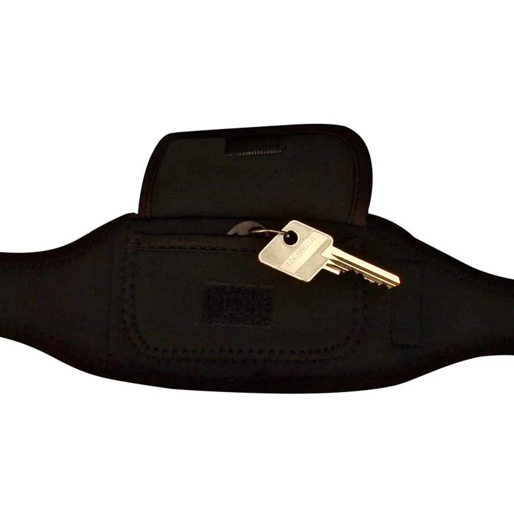Zakje met klittenbandsluiting aan de achterkant van de sportriem voor sleutels / geld
