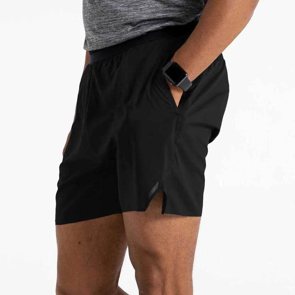 De Accelerate Short voor heren. Gemaakt van ultralicht materiaal dat is gerecycled uit plastic flessen. Met een gaaspaneel voor extra ademend vermogen tijdens intensieve trainingen. Een merk elastische tailleband zorgt voor de perfecte pasvorm. Een binnenzak met ritssluiting houdt benodigdheden veilig en reflecterende printdetails verbeteren de zichtbaarheid tijdens nachtelijke runs.