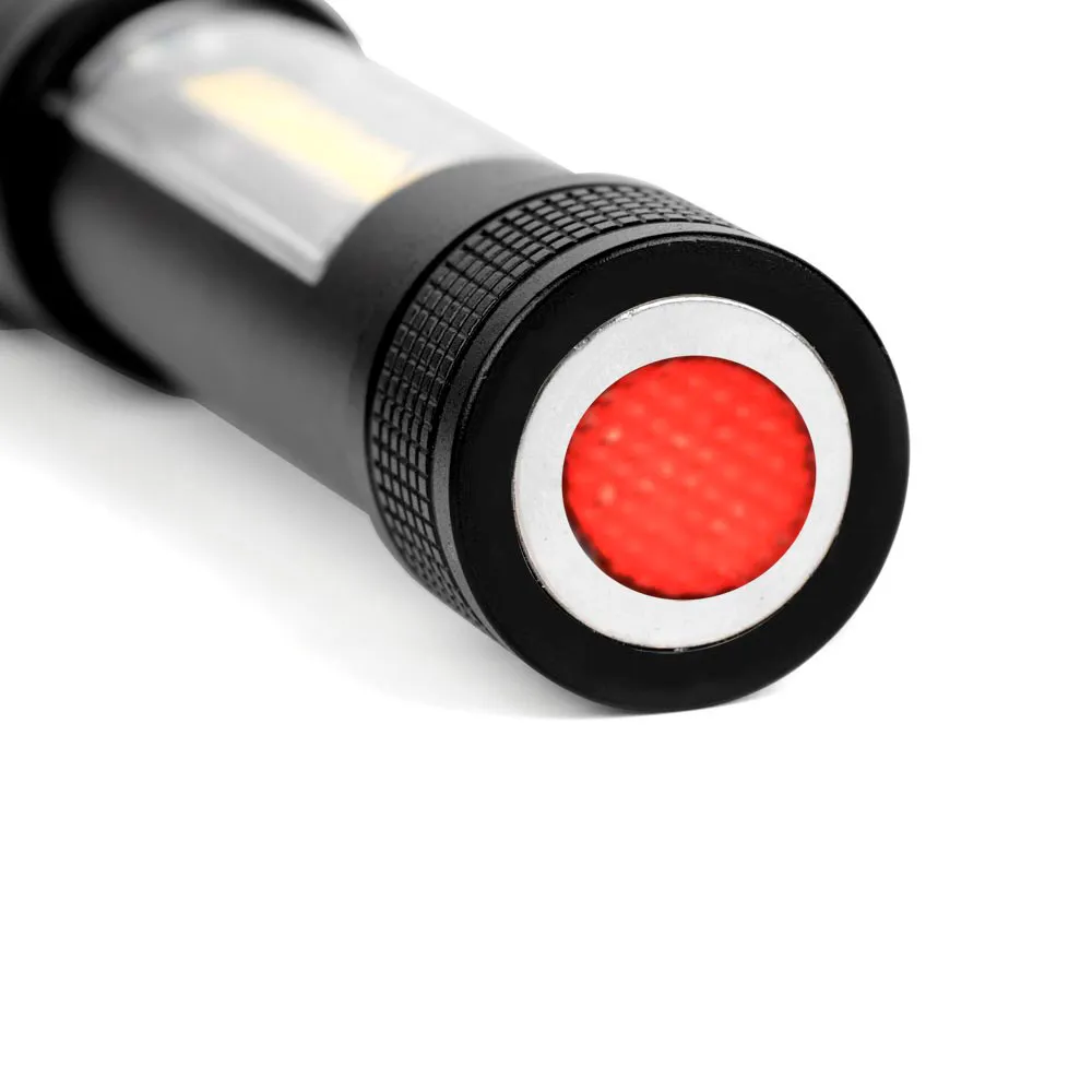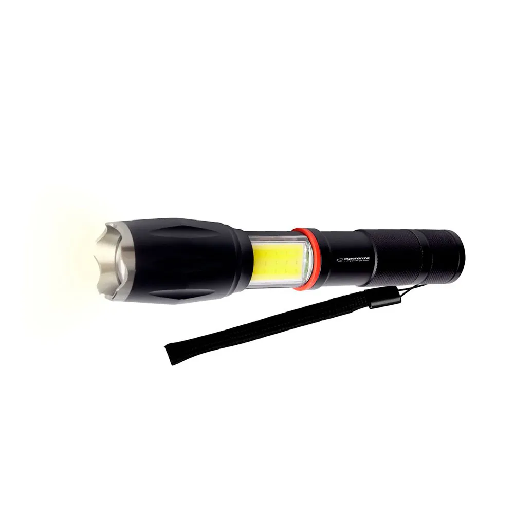 Een sterke, waterdichte aluminium LED-zaklamp Esperanza Dione met een COB-zijlamp is een onmisbaar hulpmiddel in elke situatie, of het nu gaat om dagelijks gebruik of outdooravonturen. De duurzame en solide constructie zorgt voor een lange levensduur, zelfs in zware weersomstandigheden. Hij is voorzien van een verstelbare lichtbundel (zoom), zodat u het verlichtingsbereik kunt aanpassen aan uw huidige behoeften. Drie verlichtingsmodi maken een optimale aanpassing van de lichtintensiteit mogelijk, afhankelijk van de situatie, en een extra vierde modus activeert de COB-zijlamp, die zorgt voor een brede en gelijkmatige verlichting. Aan de achterkant van de behuizing bevindt zich een sterke magneet waarmee de zaklamp aan metalen oppervlakken kan worden bevestigd, wat hem bijzonder praktisch maakt in werkplaatsen of tijdens huishoudelijke taken.