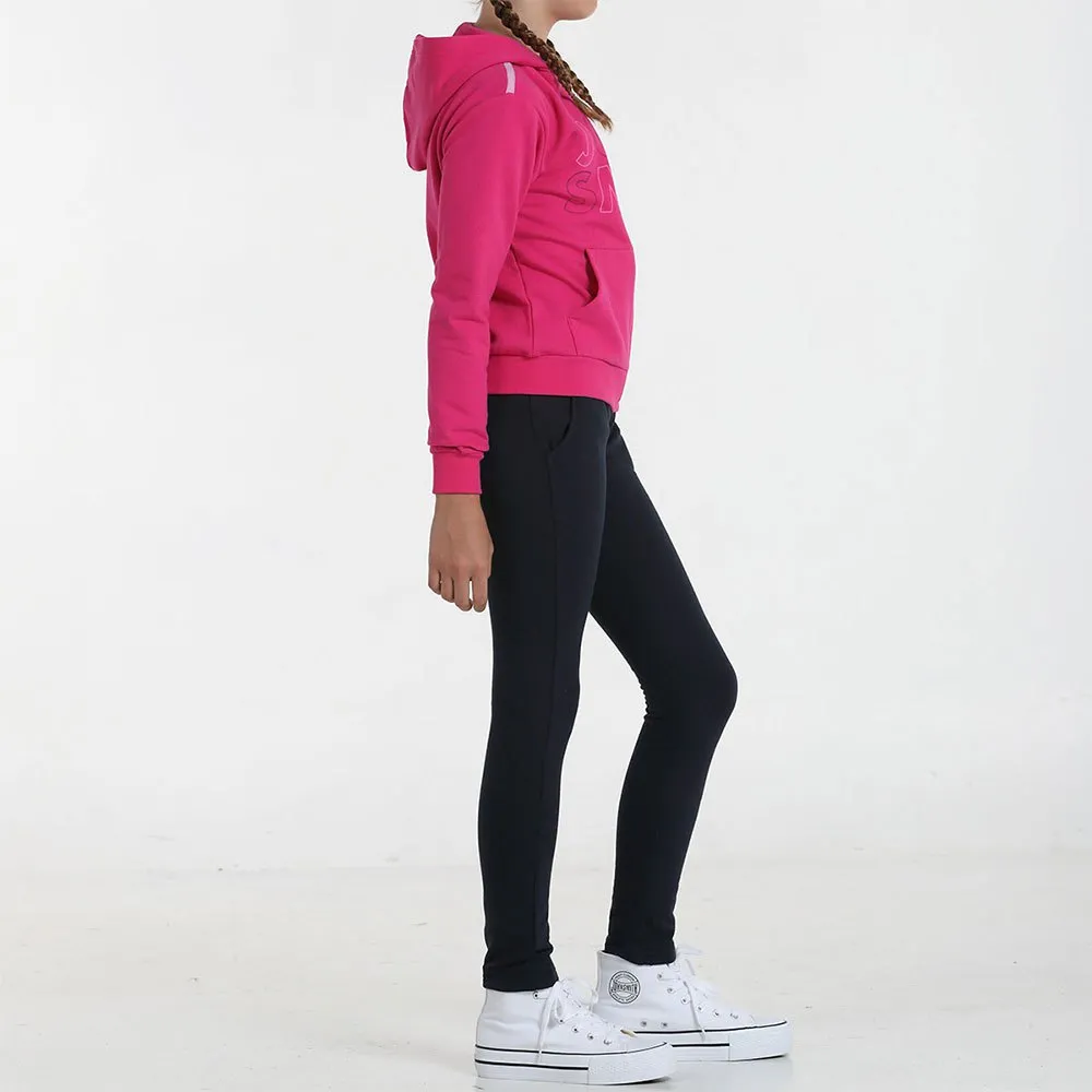 De volledige rits aan de voorkant biedt extra gemak en veelzijdigheid. Ze kan de rits gemakkelijk aanpassen om haar lichaamstemperatuur te regelen en haar look aan te passen. De rits maakt het ook gemakkelijk om het trainingspak over andere kleding te dragen, waardoor het een veelzijdige optie is voor het hele jaar door. Of ze het nu over een t-shirt draagt op een koele dag of het onder een jas draagt bij koudere temperaturen, het Binza Trainingspak is ontworpen om zich aan te passen aan haar behoeften.